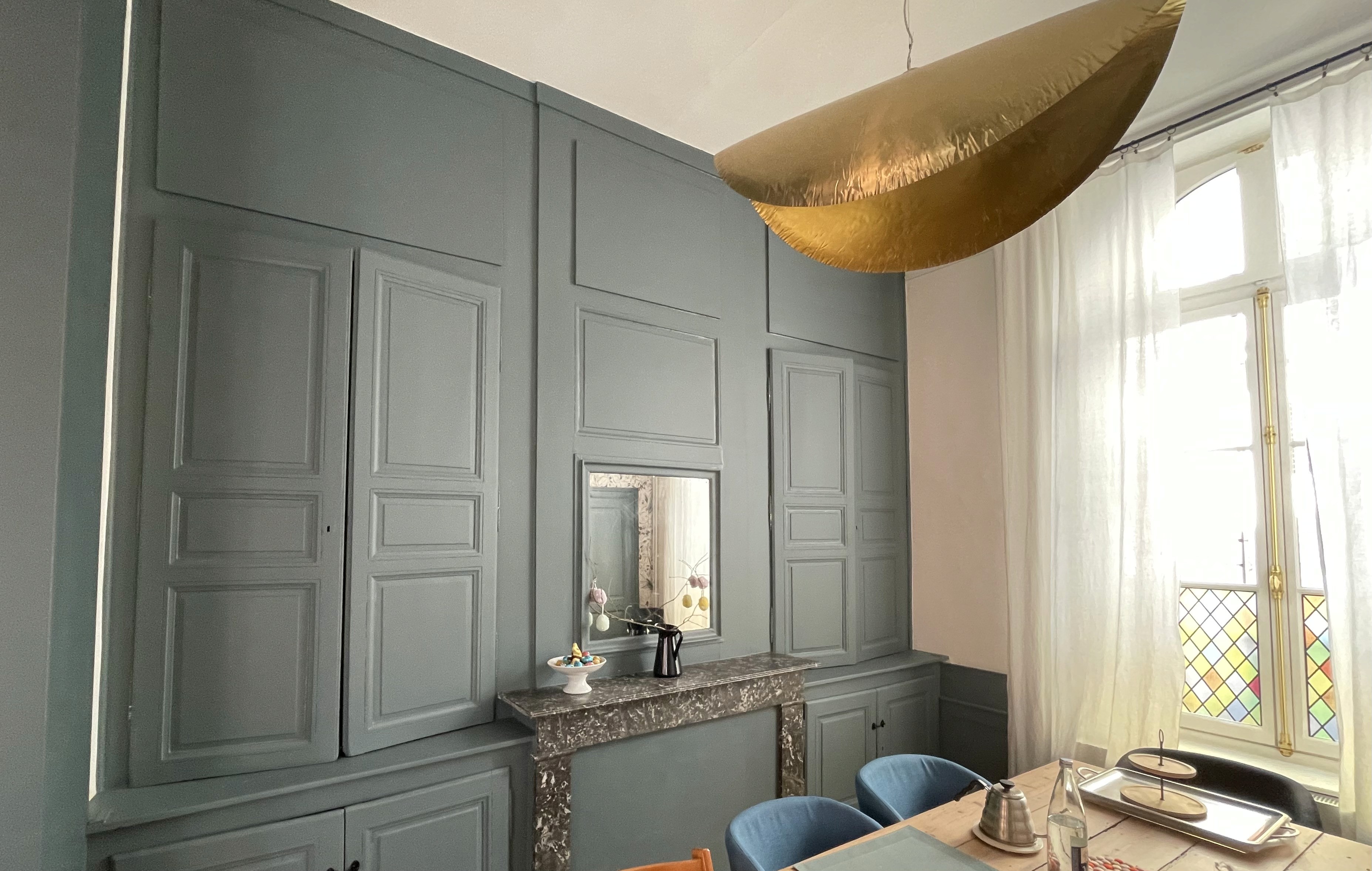 Aménagement d’un espace télétravail au sein d’un salon, séparé par un ensemble verrière et porte afin de préserver la transversalité de la lumière naturelle dans la pièce principale. Réalisation d’un placard penderie et de rangements sur mesure à l’entrée, accompagné d’une mise en peinture blanche des murs et plafonds. Un projet d’aménagement intérieur fonctionnel et lumineux.